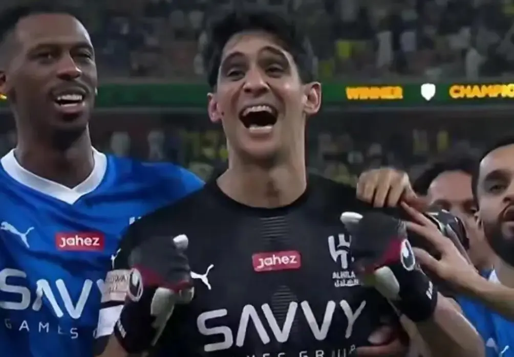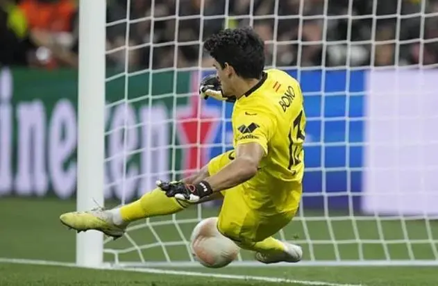 当皇马与利雅得新月的比赛即将结束时,当场上的比分牌定格在1比1时。第88分钟,比赛风云突变,新月后卫卡塔尼禁区内手臂击中皇马球员加西亚面部,后者血染赛场痛苦倒地。VAR介入,主裁亲自回看录像后判罚点球。当巴尔韦德站在点球点前,皇马球迷已经做好了绝杀欢庆的准备,但这一次,布努飞身侧扑,单掌将球挡出底线。补时阶段的点球奇迹将比分锁定为1比1。要知道这不是布努第一次在关键点球决战中拯救球队,也不会是最后一次。扑救成功后,队友们疯狂围住布努庆祝,如同拥抱着从天而降的一分。